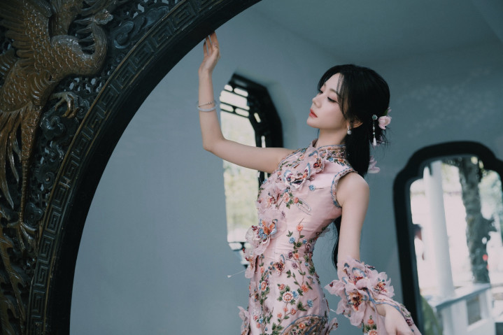 张紫宁旗袍展示东方韵味