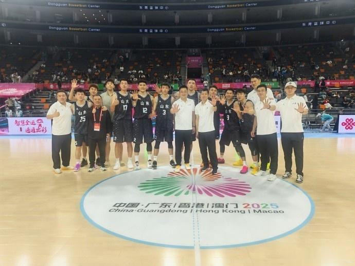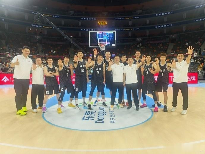 赛后,山东全运男篮球员王岚嵚晒出全队合照,并写道:“谁能想到绝地十武士超额完成任务✌”