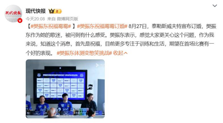 新闻发布会现场也不乏轻松时刻,当被问及如何看待偶像泰勒·斯威夫特订婚的消息时,樊振东笑着回应:“感觉大家更关心这个问题,作为我来说,知道这个消息,首先是祝福。”他随即话锋一转,表示自己目前更需要专注于训练和比赛,期望在首场比赛中有好的表现,这一回应既展现了樊振东作为公众人物的得体,又体现了他对即将开始的新赛季的专注度