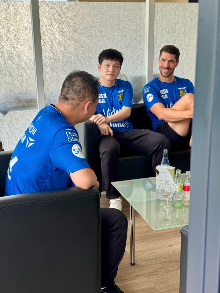 萨尔布吕肯俱乐部不仅拥有樊振东,还汇集了众多世界级选手,队伍中包括巴黎奥运会男单银牌得主莫雷高德、东京奥运会男团银牌得主弗朗西斯卡,以及达科、村松裕人、约内斯库等实力派球员,主教练王志来自中国,这无疑将为樊振东的融入提供更多便利;莫雷加德在樊振东加盟官宣后就在社交媒体上表示:“很荣幸能和你成为队友”,展现了队伍内部的和谐氛围,这种强强联手的阵容配置,使得萨尔布吕肯俱乐部在新赛季的各项赛事中都将成为夺冠热门