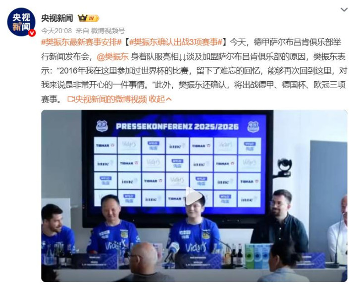 樊振东在新闻发布会上明确表示,将代表萨尔布吕肯俱乐部参加德甲、德国杯和欧冠三项赛事,这一决定展示了他在新俱乐部的重要地位,也预示着球迷们将有大量机会欣赏到他的精彩表现;萨尔布吕肯俱乐部经理巴里奥斯公布了樊振东的初步赛程安排:8月31日联赛首秀主场对阵贝格诺伊施塔特,随后在9月19日参加对阵多特蒙德的德国杯比赛