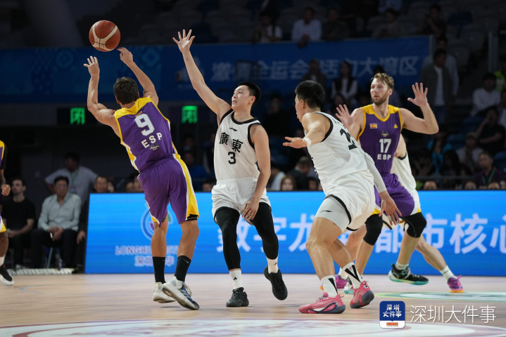 中场休息后,西班牙队防守加强,并连续追分。广东队严防死守,锐气十足,张文逸、刘传兴、徐杰多次把握机会投篮得分,至三节赛事结束,广东队将比分定格在87:41。