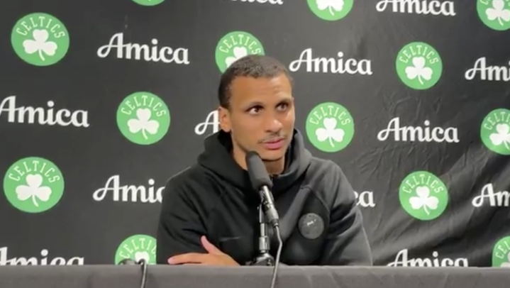 赛后凯尔特人主帅乔-马祖拉接受记者采访时谈到了约什-米诺特重重摔倒后立刻弹起。