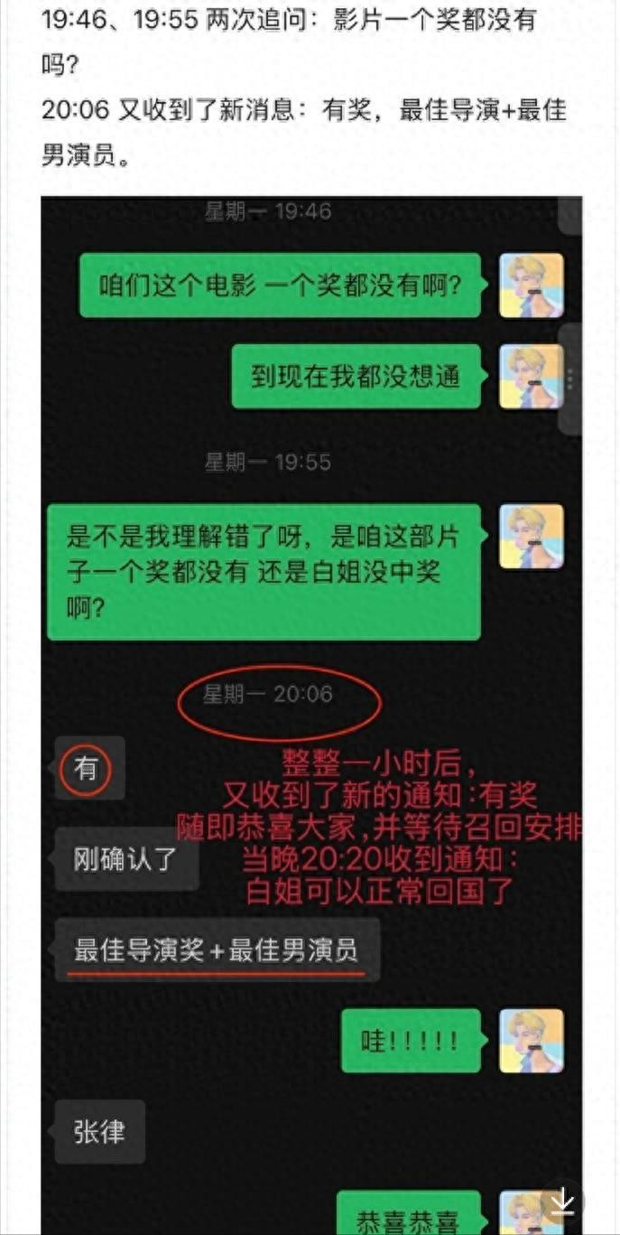 根据工作室的公开信息,白百何并没有收到剧组通知参加闭幕式的邀请,直到导演和男主角获奖,剧组才告知她可以回国。