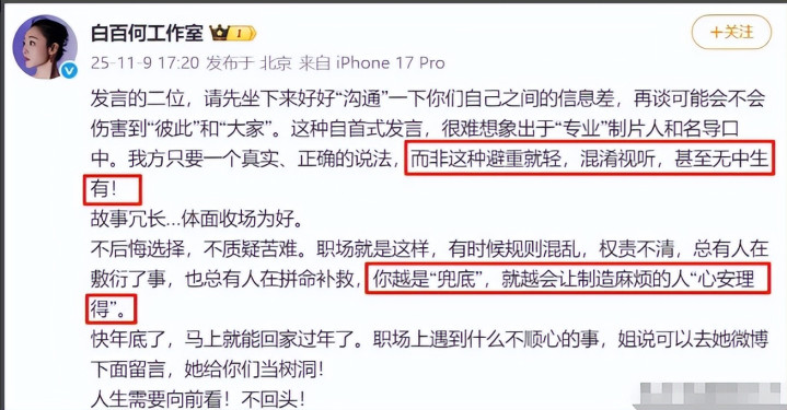 一方面,白百何在事后尽力为自己辩解,但另一方面,她的粉丝和媒体却在不断渲染剧组的“不公”,甚至用“背刺”这样的词语来形容剧组的处理方式。