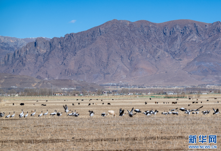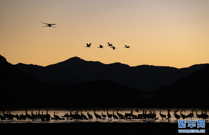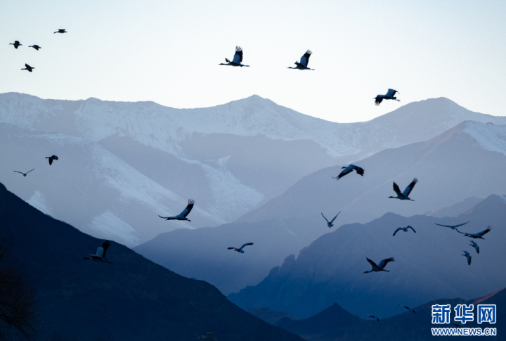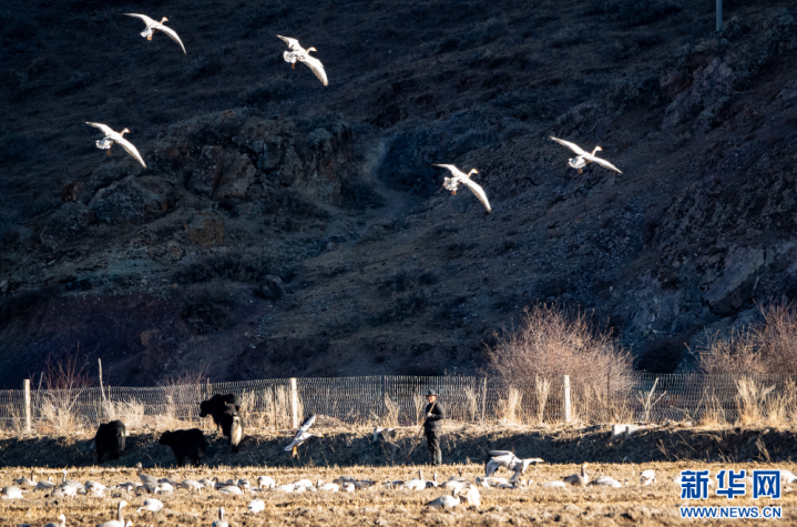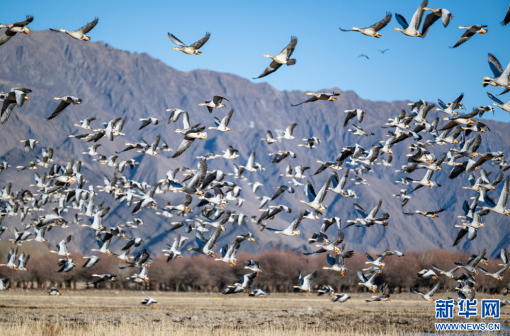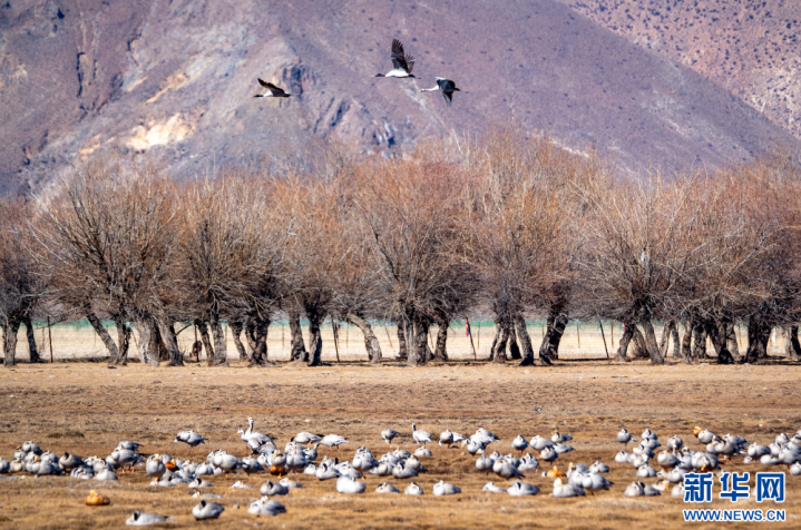 这是11月26日在西藏拉萨市林周县境内拍摄的候鸟。新华网旦增努布摄