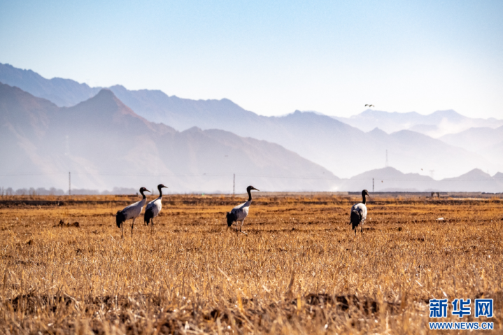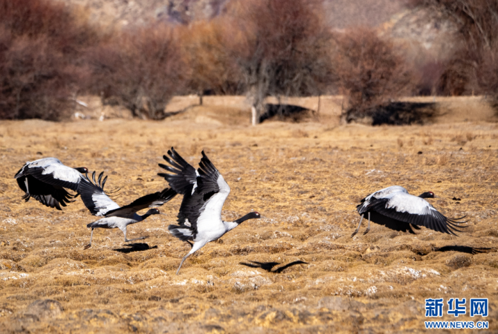 这是11月26日在西藏拉萨市林周县境内拍摄的黑颈鹤。新华网旦增努布摄