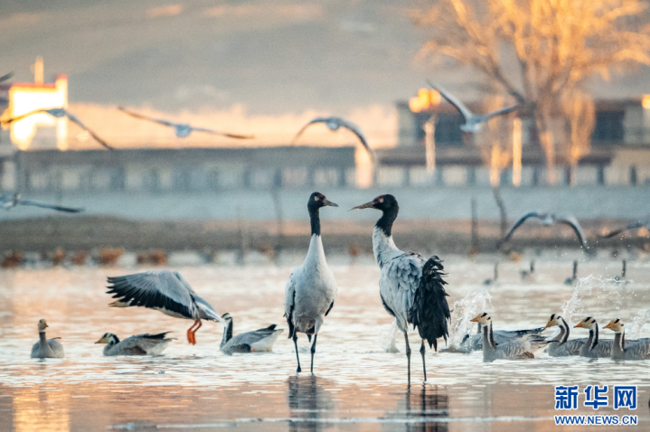 10月下旬开始,西藏拉萨河谷迎来大批越冬候鸟。黑颈鹤、斑头雁、赤麻鸭等候鸟们主要栖息在海拔2500米至5000米的高原、草甸、沼泽地带,在拉萨河谷,它们将待到来年三四月份。